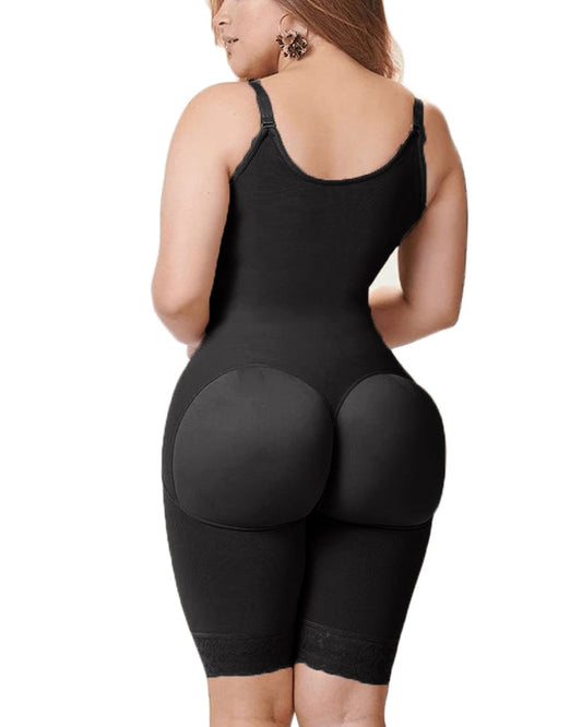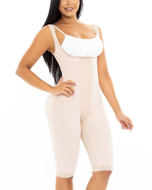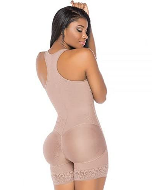 Fajas Colombianas Body Shaper Girdle With 2 Line Hooks, Covered Back, Free Breasts, Perineal Opening Crotch