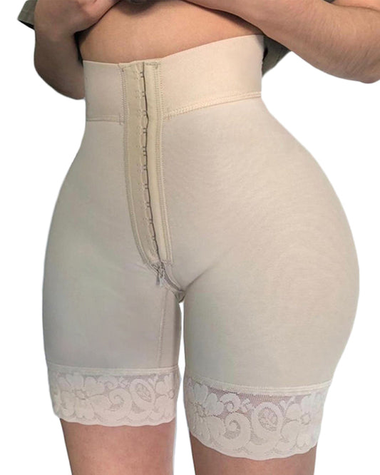 Women High Waist Hip Enhancer Cincher Butt Lifter Zipper Shapewear Lace Tummy Control Panties Shaper Breathable Fabric Front Closure