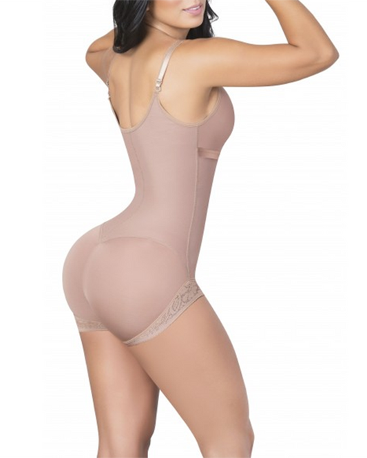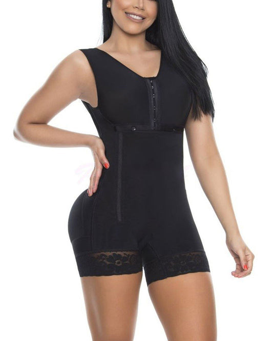 Fajas Colombianas Body Shaper Girdle With 2 Line Hooks, Covered Back, Free Breasts, Perineal Opening Crotch