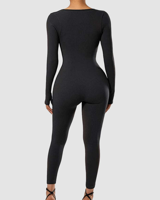 Limited-Time Flash Sales-Women Long Sleeve Yoga Jumpsuits Workout Ribbed Bodysuits Pants Sexy One Piece